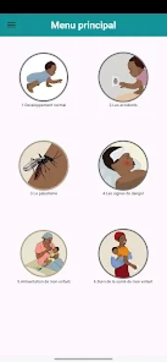 Mon Enfant Grandit, 0-5 yaş arası çocukların ebeveynlerine yönelik tasarlanmış bir mobil uygulamadır. Uygulama, çocuk sağlığı ve gelişimi konularında güvenilir bilgilere hızlı ve pratik bir erişim sunmaktadır. Altı ana tema etrafında organize edilen içerik, ebeveynlerin en önemli endişelerine yönelik pratik ve uzman onaylı öneriler sağlamaktadır. Bu temalar arasında normal gelişim, kaza önleme, sıtma, tehlike işaretleri, beslenme ve sağlık takibi yer almaktadır.